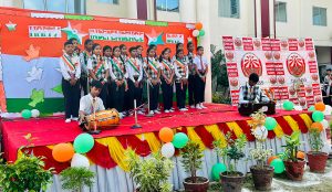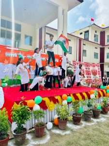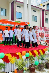 79वें स्वतंत्रता दिवस की सुबह डालिम्स सनबीम स्कूल गांधी नगर के प्रशासनिक खंड के समक्ष लगे विशाल मंच के अभिमुख भारत के ध्वज तिरंगा का ध्वजारोहण डालिम्स सनबीम स्कूल गांधी नगर के निदेशक हर्ष राय और प्रखर प्रधानाचार्या डॉ. प्रेरणा राय के कर-कमलों से अभिभावक समूह, विद्वत संकाय सदस्यों, शिक्षकेत्तर सदस्यों और छात्रों की वृहत्तर उपस्थिति में उल्लास और भारत माता की जय, जय जवान जय किसान, वीर अमर रहे, संविधान की जय जय, हमारा देश हमारा अभिभान के करतल जयघोष के साथ सम्पन्न हुआ. तत्पश्चात जन-गण-मन राष्ट्रीय गान का सस्वर गान डालिम्स सनबीम स्कूल गांधी नगर के संगीत शिक्षक सुशील कुमार राय के निदेश में डालिम्स सनबीम स्कूल गांधी नगर के चेतना सम्पन्न छात्र-छात्राओं ने सार सम्पन्न गाकर उपस्थित समूह को ओज से भावपूर्ण कर दिया.