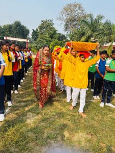 तत्पश्चात कक्षा सात ब, चार ब और छ: ब के छात्र-छात्राओं के समूह ने पर्व के प्रति अपने नैतिक मूल्यों से सम्पन्न अभिनेय से छठ पूजा-अर्चना की महत्तर परिभाषा को उद्धृत किया.