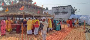 भावरकोल: क्षेत्र के शेरपुर खुर्द गाव स्थित महावीर मंदिर परिसर में नौ दिवसीय महामृत्युंजय यज्ञ के चौथे दिन रविवार को यज्ञशाला की परिक्रमा के लिए सैकड़ों की संख्या में श्रद्धालुओं की भीड़ रही।