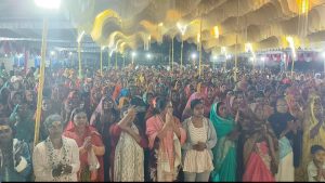 यज्ञ में चल रहे श्री रामकथा के चौथे दिन मथुरा स्थित श्री धाम वृंदावन से पधारे वृंदावन महाराज जी के द्वारा श्रीराम जन्मोत्सव का मार्मिक वर्णन किया गया। आगे कहा की जब धरा पर धर्म के स्थान पर अधर्म बढ़ने लगता है, तब धर्म की स्थापना के लिए ईश्वर को आना पड़ता है। भगवान राम ने भी पृथ्वी लोक पर आकर धर्म की स्थापना की और लोगों का कल्याण किया।
